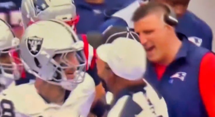While his team was up 7-0 in the game, Maxx Crosby was caught taunting Patriots head coach Vrabel, who was complaining to a ref.
