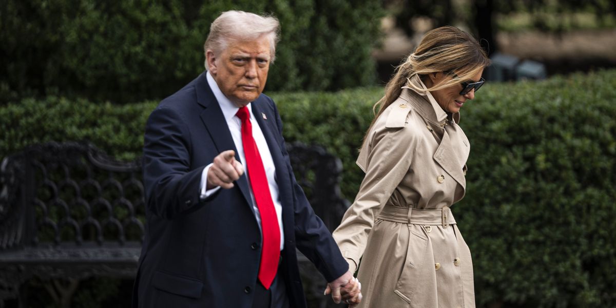 U.S. President Donald Trump and First Lady Melania hold hands as they arrive for a state visit at Windsor Castle in England on September 17, 2025 | Source: Getty Images