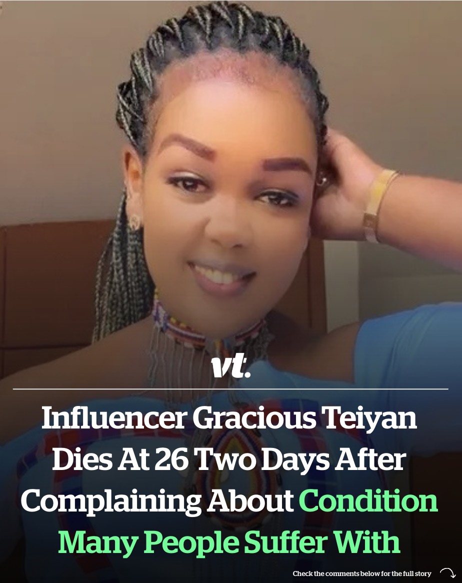 Kenyan lifestyle influencer Gracious Teiyan has died at the age of 26 after being hospitalized with a common condition.