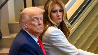 While taking an escalator within the building, it turned off, forcing him and Melania Trump to walk up the rest of the way.