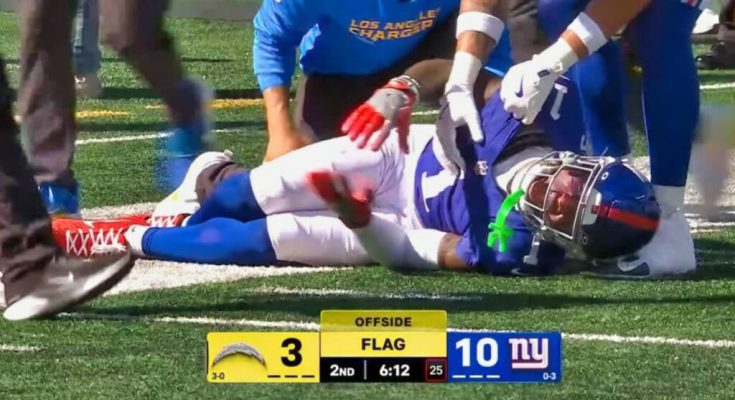 New York Giants superstar wide receiver Malik Nabers suffered a horrific-looking knee injury and had to be carted off in the second quarter of Sunday’s game against the Los Angeles Chargers.
