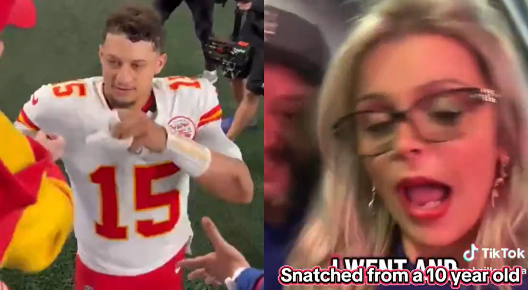 The woman, since identified as Nina Miller, attempted to do damage control by claiming she had no idea Mahomes was trying to hand the sleeve to the boy, who was reportedly celebrating his 10th birthday.