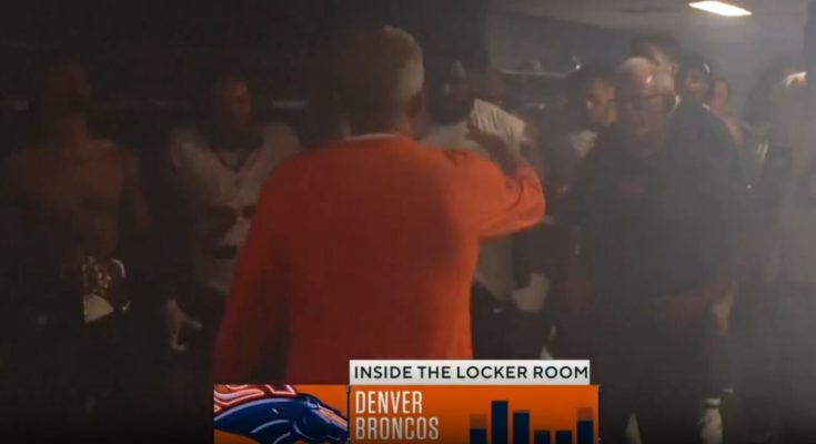 CBS went live into their locker room as head coach Sean Payton was delivering a speech to the team on a job well done.