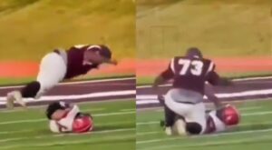 His father was shown in a video making an emotional plea to the school board to preserve his son’s education. It appears his message did not fall on deaf ears, as the offensive lineman was punished but has not been suspended or expelled.