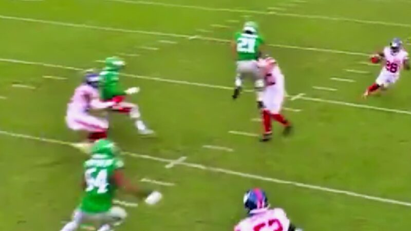 Wearing the Eagles’ green and silver, Brown went airborne as Olszewski tried to steady himself near the end zone. The collision was brutal, sending the Giants’ returner flying backward and the ball loose. The play didn’t draw a flag, but it definitely got attention.