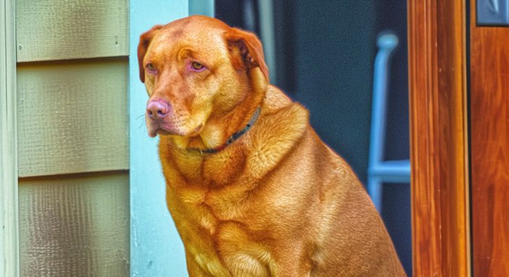 A dog sitting on the front porch | Source: Midjourney
