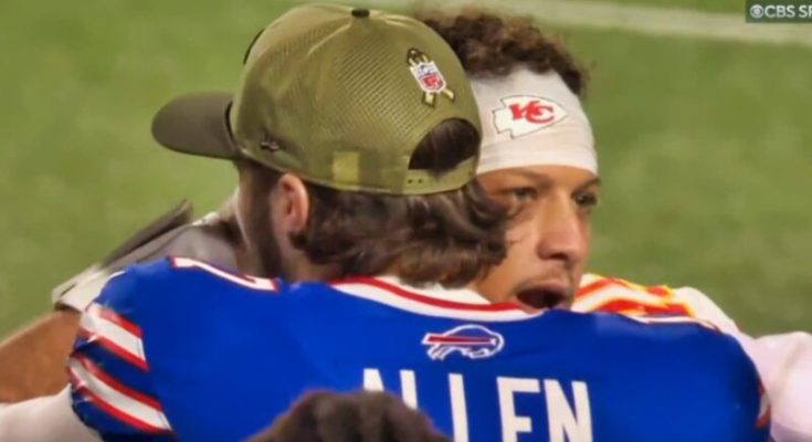 Patrick Mahomes could be seen telling Josh Allen, “Good game, bro,” before saying other things as they hugged it out.