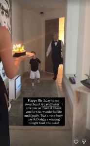 On top of a video of McPhee presenting her husband with cake and lit candles, she wrote, “Happy Birthday to my sweetheart @davidfoster. I love you so much & thank you for this wonderful life and family. Was a very busy day & Dodgers winning tonight took the cake!”