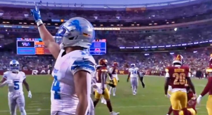 Amon-Ra St. Brown paid tribute to President Donald Trump after his first-quarter touchdown against the Washington Commanders on Sunday.