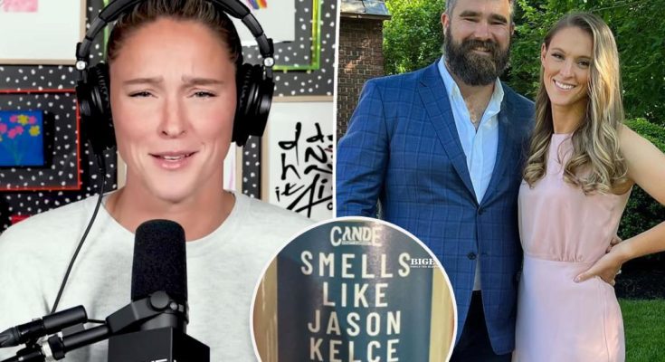 A fan tweeted a photo of a scented candle called “Smells Like Jason Kelce,” writing, “I feel like I need Kylie’s permission to smell it …”