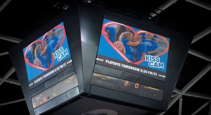 A couple kissing on Kiss Cam footage | Source: Midjourney