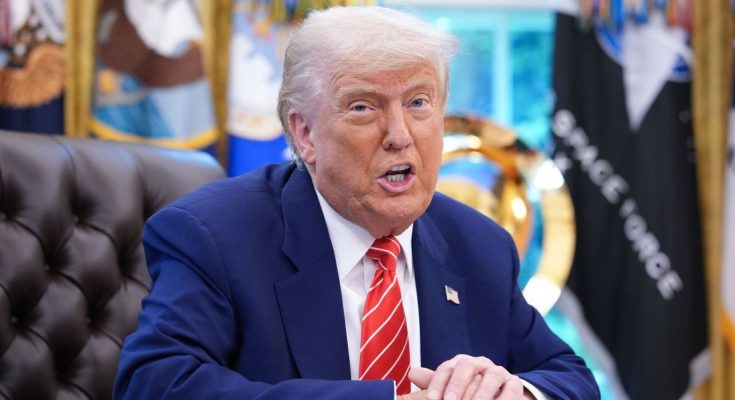 President Donald Trump at a press conference in the Oval Office of the White House on October 10, 2025 | Source: Getty Images