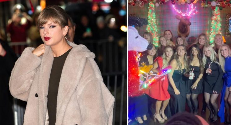 Taylor Swift was just one of the girls when she attended the Kansas City Chiefs’ Christmas party alongside fiancé Travis Kelce.