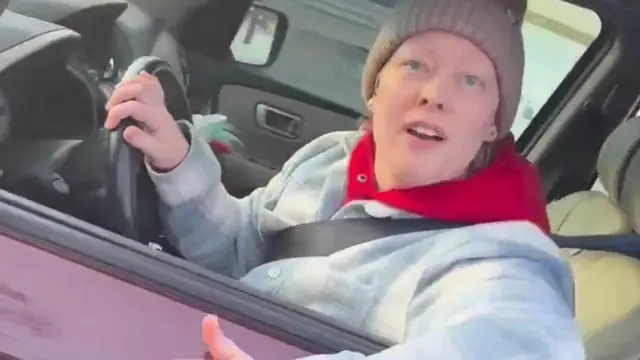 Renee’s hands are turning the wheel to the right in the video (Alpha News)